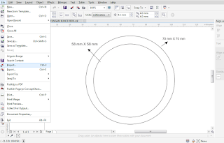 • Lalu buat lingkaran kedua menggunakan Ellipse Tool dengan lebar dan panjang : 58 mm X 58 mm